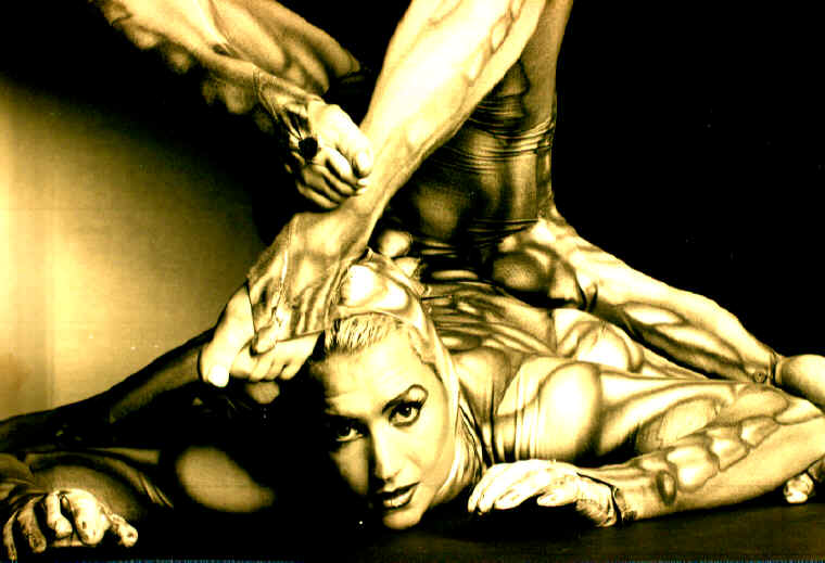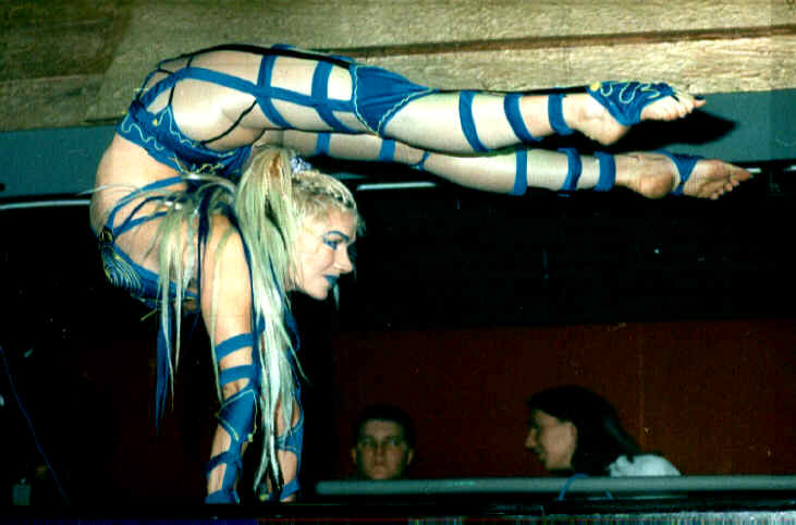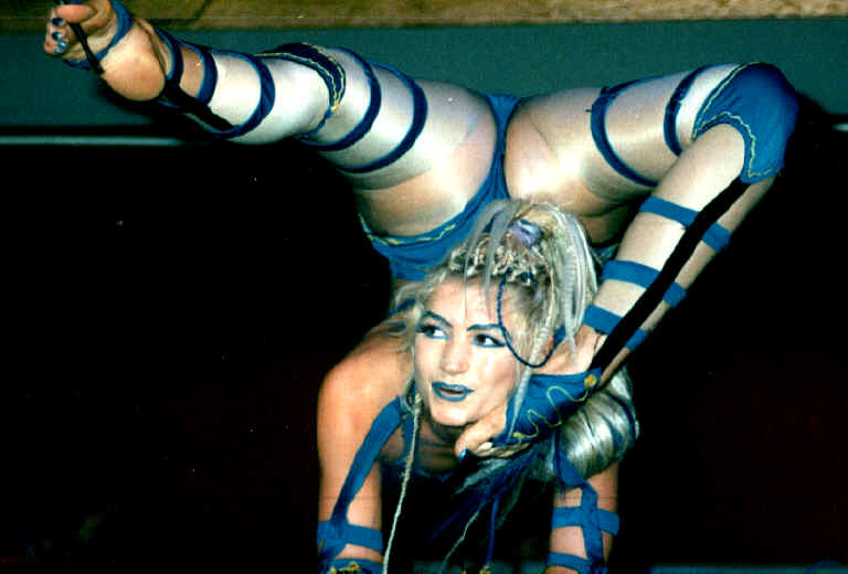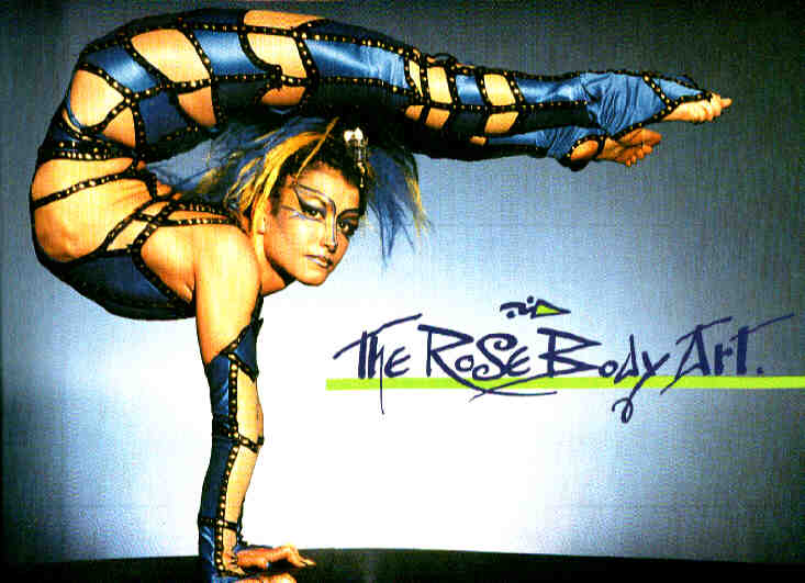 Meet Rose Zone. Rose is a modern contortionist known for her artistic poses and elaborate costumes. She is an active performer, and has gracefully supplied us info and pictures for your enjoyment. For those people who think that all contortion acts look the same, you haven't seen Rose! Her originality certainly sets her apart from what you have come to expect. Blending the arts of theater and contortion, she becomes a whole new character with the change of a costume and her body movements. From soft and sensuous, to agressive and dominating, to simply a work of art ... Rose can be anything. Limited by neither her body nor her imagination, she is redefining "the art of performance". And if that weren't enough, she is also quite a talented singer! She makes the type of music that she most enjoys performing her contortion act to - Techno. Her first Techno CD ("French Kiss", "Divamania") were fairly successful, and now she is working on recording her first self-written and self-performed song together with the German singer, Inga Humpe.